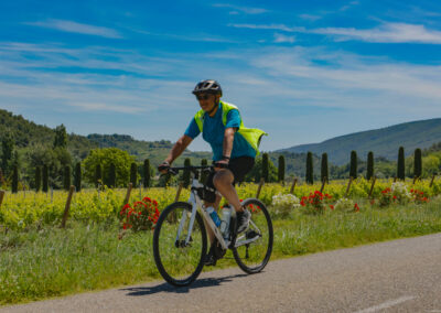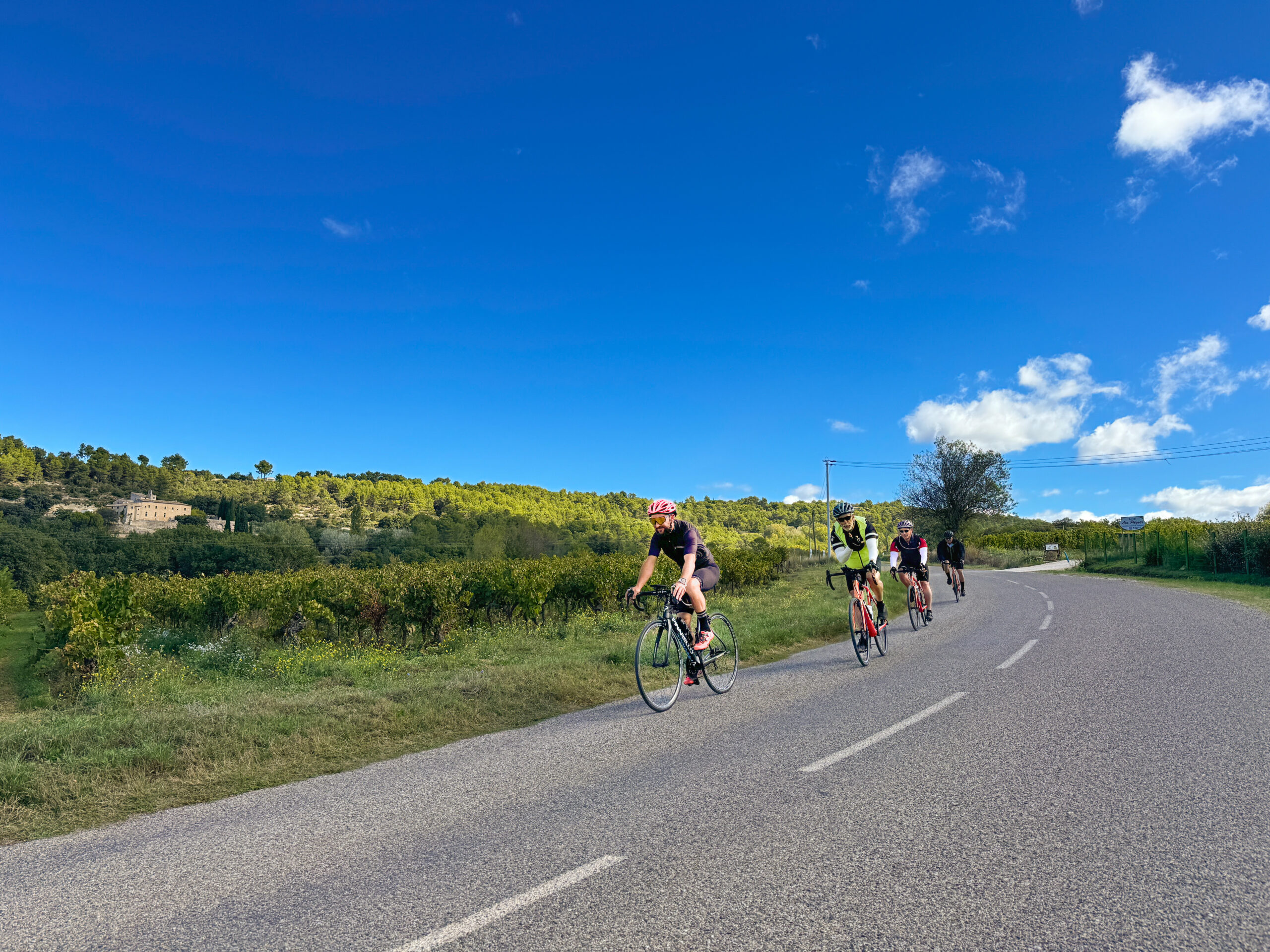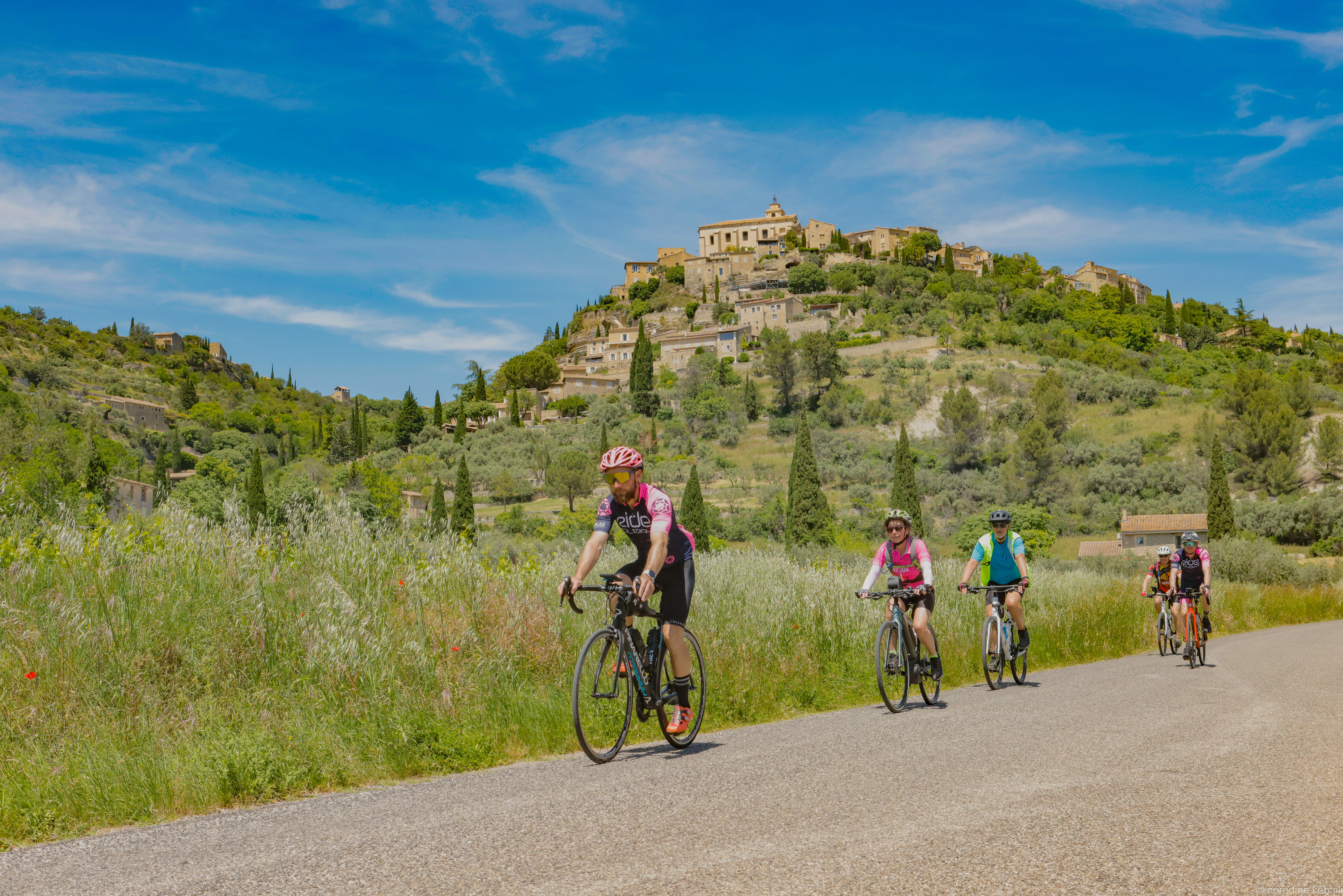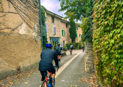 You’ll ride a beautiful loop through some of the Luberon’s most iconic villages. Wander through Roussillon and its striking ochre trail, stop for a coffee in Lacoste, continue to Ménerbes, and follow the road past the ancient Roman Pont Julien. Lunch is usually enjoyed in Gordes, a village celebrated for its dramatic viewpoints and timeless stone architecture. A wine tasting is organised in the afternoon before heading to one of our favourite dinner spots.