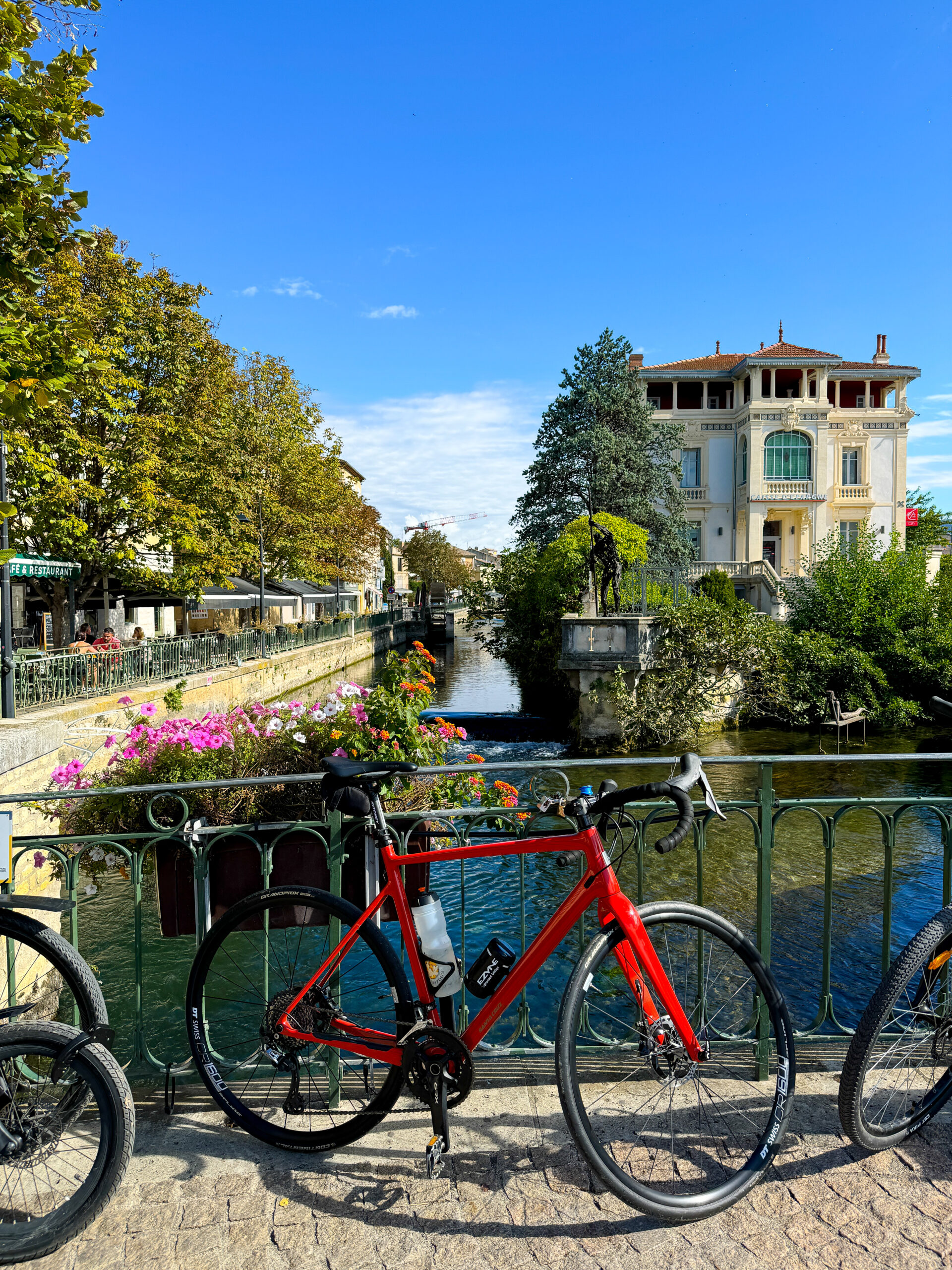 You begin the day with a gentle descent toward the river before joining a quiet cycling path that guides you to L’Isle-sur-la-Sorgue. This 60 km (37 miles) loop gives you time to explore the town’s famous antique market or continue on to Fontaine-de-Vaucluse to see the powerful natural spring that gives rise to the Sorgue River.