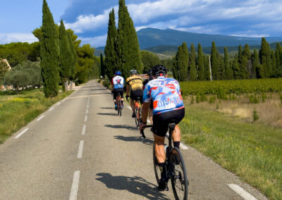 Day 2 offers a 40 km ride toward Col de la Madeleine, then down to Vaison-la-Romaine, where you’ll discover its vibrant market and scenic wine roads by Gigondas, Séguret, Vaqueyras. For the return, you can choose between hopping in the support van or continuing the ride back to the hotel—your day, your pace.